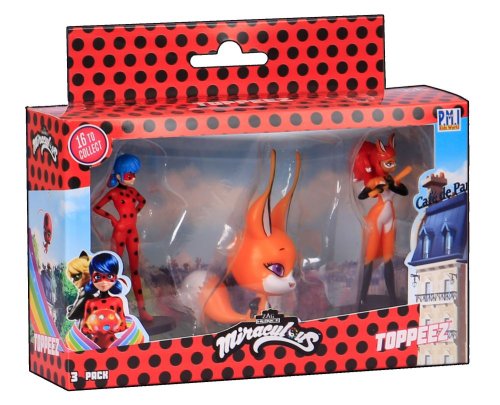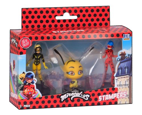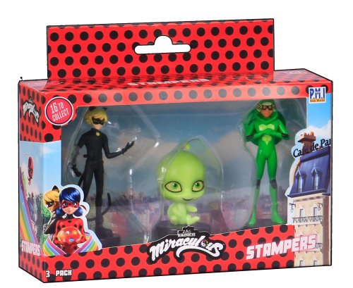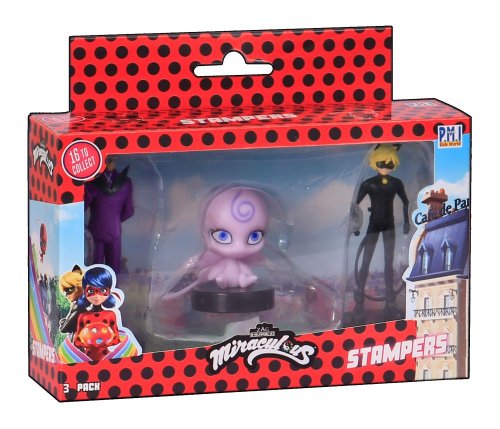 Tri kúzelné figúrky z rozprávky Miraculous: Lienka a čierny kocúr s pečiatkami. Tieto figúrky majú v spodnej časti pečiatky, takže deti si môžu ozdobiť školské práce, vytvoriť nové obrázky a ďalšie. Vhodné pre deti od 3 rokov.