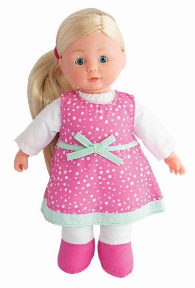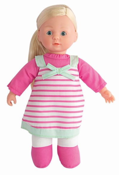 Bábika s mäkkým telíčkom a dlhými vláskami v pekných šatôčkach. Výška bábiky 30 cm. Náhrada za S 5010867.