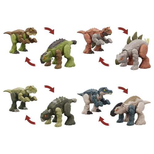 Pripravte sa na veľké vzrušenie a dobrodružstvo s Jurským svetom! Tieto figúrky posúvajú transformáciu dinosaurích hračiek o krok ďalej, pretože bylinožravce sa menia na mäsožravce a späť v 10 jednoduchých krokoch! V tomto rade môžu deti nájsť 4 rôzne figúrky dinosaurov s rozmermi približne 17 na 12 cm. Tyrannosaurus rex sa premení s Ankylosaurom v 2 rôznych dekoroch. Carnotaurus sa premení so Stegosaurom a Baryonyx s Parasoralofom. V podobe každej dinosaurie figúrky nechýbajú charakteristické znaky jednotlivých druhov dinosaurov. Skvelá transformujúca sa hračka pre deti od 6 rokov. Každý sa predáva samostatne v závislosti od dostupnosti. Farby a vzhľad výrobku sa môžu líšiť.