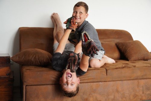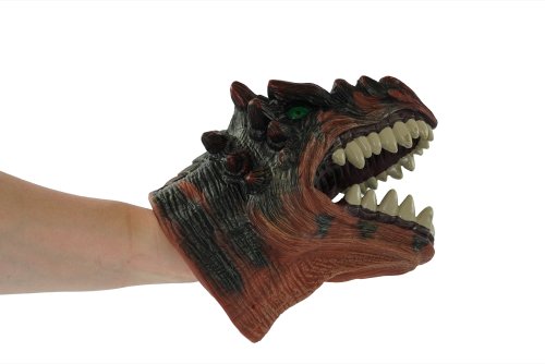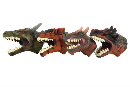 Gumené návleky na ruku v tvare dinosaurie hlavy. Mäkká guma umožňuje pohyb čeľuste dinosaura. 4 druhy