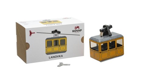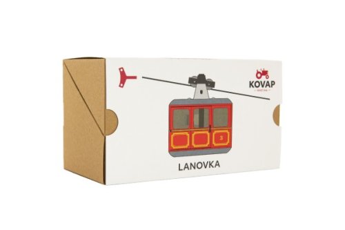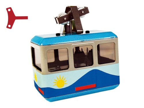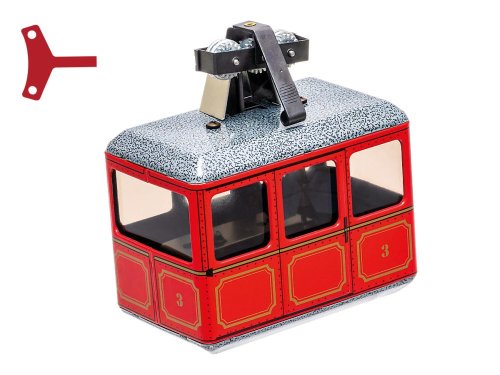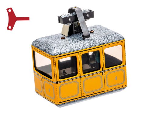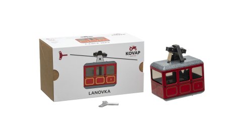 Kovový model lanovky. Vhodné pre deti od 3 rokov. Priložený povrázok v dĺžke 5 m upevníme medzi dva pevné body, alebo zavesíme pomocou priložených gumových krúžkov. Prevýšenie na tejto dĺžke môže byť maximálne 0,5 m. V podlahe lanovky je otvor pre naťahovací kľúčik a brzda. Pri naťahovaní strojčeka musí byť brzda v polohe "0". Lanovka sa bude pohybovať smerom od brzdy k otvoru pre kľúčik. Takto natiahnutú lanovku položíme drážkami hnacieho súkolia na napnutý povrázok a uvoľnením brzdy do polohy "I" uvedieme lanovku do pohybu.