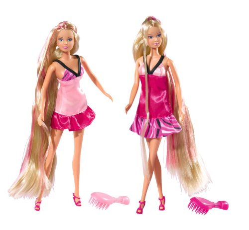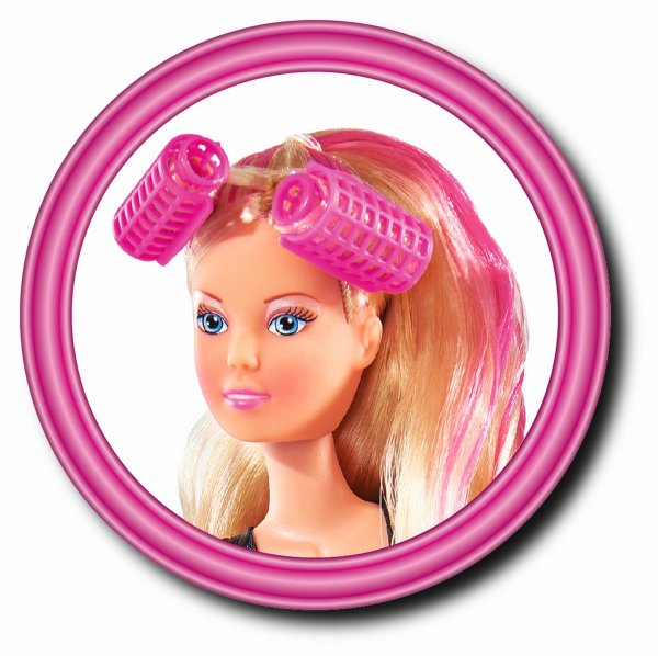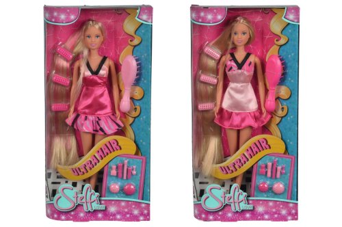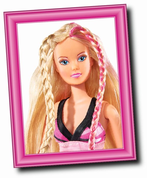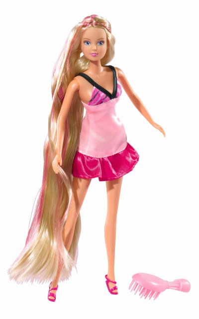 Bábika Steffi s extra dlhými vlasmi s hrebeňom, kefou, fénom a kulmou. Výška bábiky 29 cm.