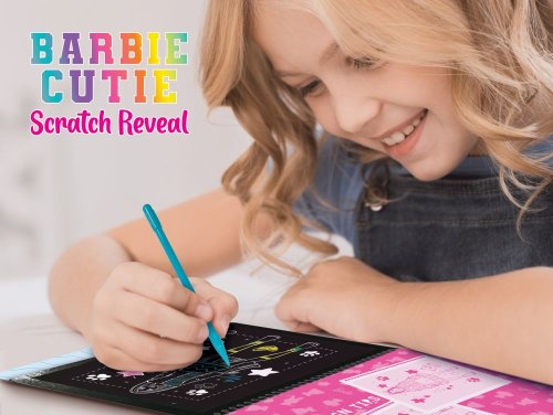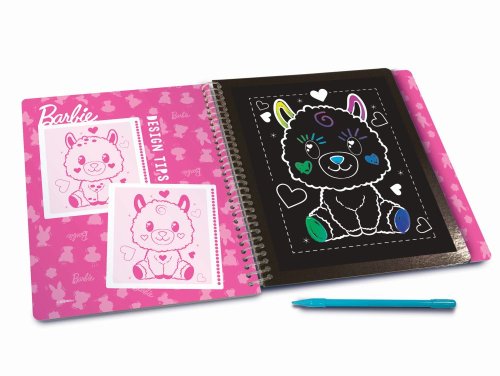 Objavte kúzlo farieb so škrabačkou Barbie vo fantastickom dizajne Fantasy and Cutie. S priloženým perom zoškrabnite hornú vrstvu čiernej farby a objavte jasné dúhové farby s fantastickými odtieňmi. Vhodné pre deti od 4 rokov.