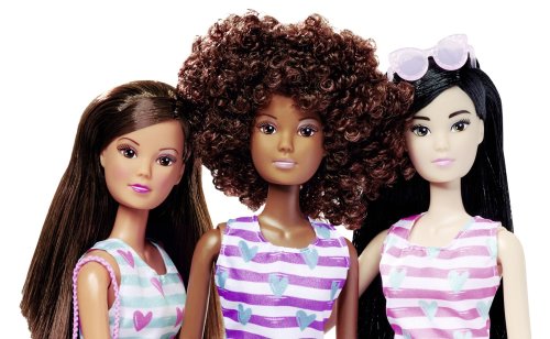 Bábika Steffi v pruhovaných šatách so srdiečkami, rôzne farby. 3 rôzne bábiky, kamarátky. Veľkosť bábiky 29 cm.