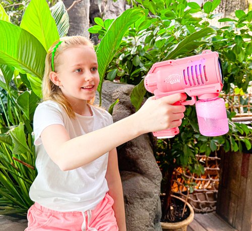 Bublifuková pištoľ na batérie, ktorá jednoduchým stlačením chrlí záplavu bublín.
