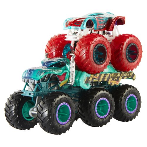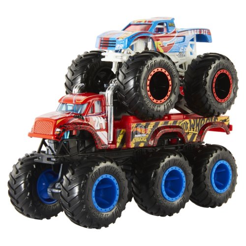 Hot Wheels® Monster Trucks Nákladiačiky ťahajú veľké osobnosti na šiestich kolesách za veľkolepými dobrodružstvami. Každý model nákladiaka zachytáva štýl a osobnosť obľúbenej postavy alebo príšery z Monster Truckov v mierke 1:64. Keď sa k tomu pridá šesť masívnych kolies, môže táto súprava prevážať aj ďalšie Hot Wheels Monster Trucky, a to buď na ťažnom háku, alebo na plošine! Ďalšie nákladné vozidlá sa predávajú samostatne. Farba a prevedenie dekorácií sa môžu líšiť.