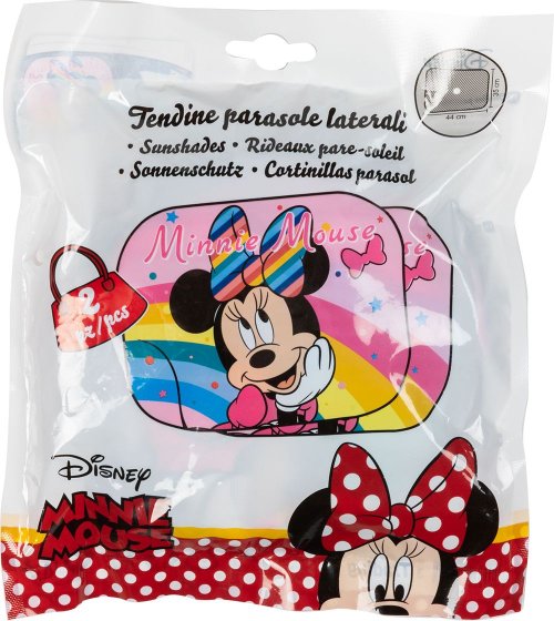 Slnečné clony Disney MINNIE, ktoré bránia prenikaniu slnečných lúčov do vozidla. Sú určené na zadné, alebo bočné sklá automobilu. Upevnenie pomocou prísaviek. komplet 2 kusy rozmer 44 x 35 cm