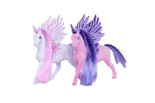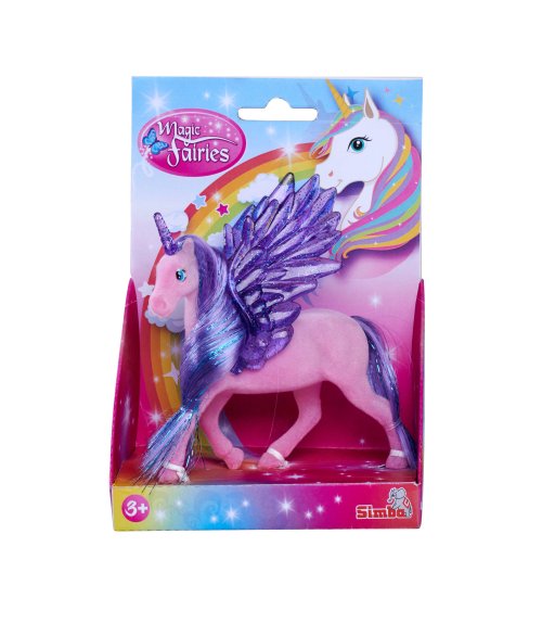 Figúrka jednorožca s trblietavými polopriehľadnými krídlami a rohom. 2 druhy. Veľkosť 11 cm.
