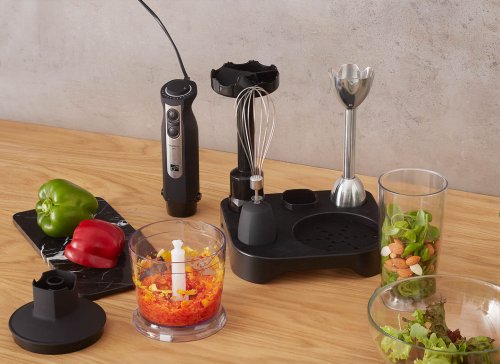 Celé telo mixéra je kovové . Krásny dizajn a premyslený tvar vám umožnia absolútne pohodlnú manipuláciu aj držanie. Mysleli sme na všetko, takže oceníte aj ústretovo umiestnené ovládacie prvky a praktický stojan , do ktorého mixér aj s príslušenstvom ľahko umiestnite.