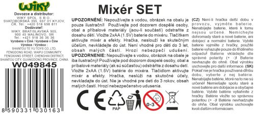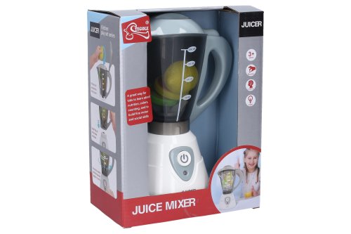 Mixér s ovocím. on/off prepínač batérie 2xAA nie sú súčasťou, rozmery: 11x14x23cm, svetelné efekty. návod na použitie na obale. Nádoba je odnímateľná.