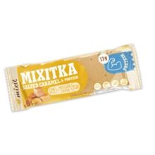 Tyčinky Mixitka nabušená proteínmi a chuťou slaného karamelu, bezlepková receptúra vyvinutá pre všetkých, ktorí hľadajú poriadnu porciu bielkovín – 13 g bielkovín nájdete v každej tyčinke