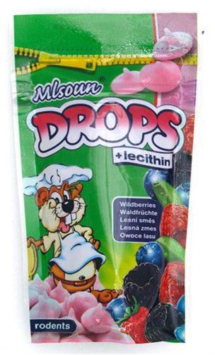 Doplnkové krmivo pre hlodavce. Pochúťka pre hlodavce vo forme dropsíkov obohatená lecitínom as príchuťou lesného ovocia.