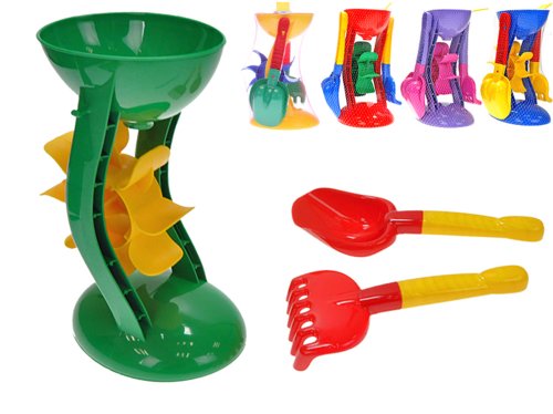 Balenie obsahuje mlynček, lopatku a hrabličky. Postup je veľmi jednoduchý. Pomocou lopatky deti vhodia piesok do lievika, ktorý následne roztočí mlynský bicykel a hrátky môžu začať!