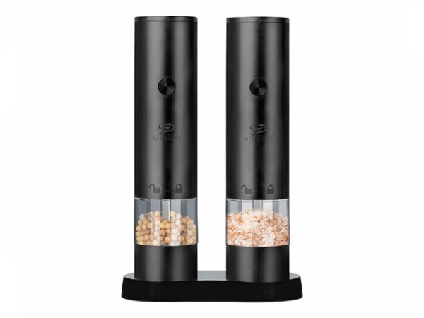Táto sada dvoch moderných elektrických mlynčekov je perfektným riešením pre tých, ktorí si cenia pohodlie a eleganciu. Tieto mlynčeky na batérie melú soľ a korenie. Stačí stlačiť tlačidlo a mlynček začne mlieť. Mlynček je vyrobený z odolných materiálov – plastu a nerezovej ocele – pre dlhú životnosť a estetický vzhľad. Nastaviteľné mletie vám umožňuje prispôsobiť korenie vašim individuálnym potrebám. Priehľadná nádoba umožňuje sledovať úroveň pálivosti počas používania. Ideálne do modernej kuchyne a skvelý praktický darček! Napájanie zo vstavanej batérie (nabíjací USB kábel je súčasťou balenia). Nastaviteľná jemnosť mletia, ľahko prispôsobiteľné vašim potrebám. Súprava 2ks na soľ a korenie. Rozmery mlynčeka: priemer 4.5 cm a výška 19 cm, šírka podstavca 13 cm. EAN 5902738228822
