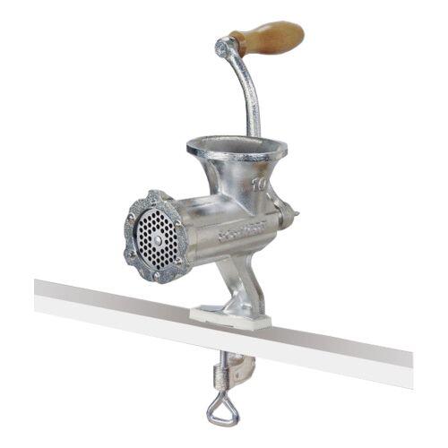 Český výrobca. Kvalitný liatinový mlynček na mäso s doskou č. 10. Dosky a nože sú kompatibilné s výrobkami značky KDS. Stredne veľký ručný mlynček na mäso na použitie v domácnosti. Vyrobené zo šedej liatiny, cínované potravinárskym cínom. Balenie obsahuje dosku s otvormi 4.5 mm. EAN 8595017313004