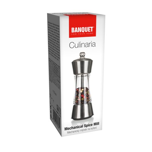 Mechanický mlynček CULINARIA je dodávaný v nerezovom prevedení, zásobníky sú akrylové. Vnútornú časť mlynčeka tvorí kvalitná keramická mlecia mechanika.