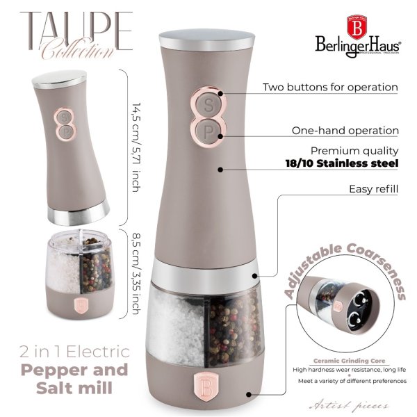 Mlynček na korenie a soľ elektrický 2v1 Taupe collection BH-9646