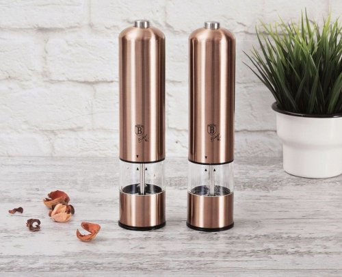 materiál: nerezová oceľ- keramický mlecí mechanizmus- výška: 23 cm- priemer: 5,5 cm vhodný na korenie a soľ aj iné hrubé korenie- sada obsahuje 2 kusy