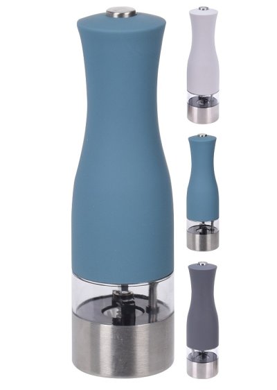 automatický elektrický mlynček na korenie - mäkčená úprava povrchu pre pohodlnú manipuláciu - nešmýka sa v ruke a dobre sa tým pádom drží aj jednou rukou - možno ľubovoľne nastaviť hrubosť mletia - vhodný na akékoľvek hrubozrnné korenie, ideálny na korenie alebo soľ - napájanie 6x AAA batérie (nie je súčasťou balenia) - výška: 20,5 cm - priemer: 6 cm - farba: modrá / nerez