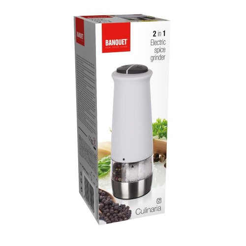 Elektrický mlynček 2 v 1 CULINARIA White na soľ a korenie. Keramický mlecí systém, možnosť nastavenia hrubosti mletia.