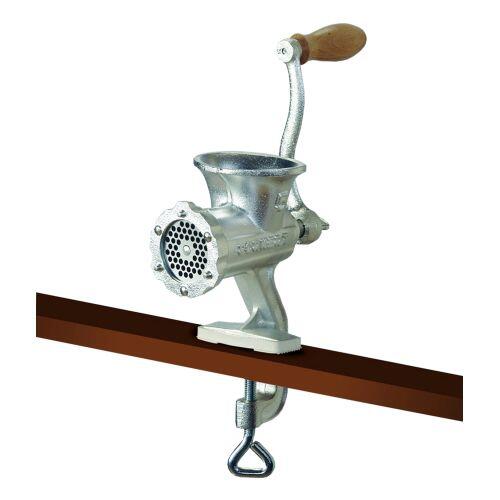 Mlynček na mäso PORKERT na prípravu sekanej, fašírok, mäsa na špagety a iných pokrmov z mletého mäsa. Mlynčeky majú certifikát zdravotnej nezávadnosti, sú povrchovo upravené hrubou vrstvou potravinárskeho cínu. Mimoriadne vysoká životnosť. Mletie je ľahké a jednoduché. Všetky diely sú vyrábané v Českej republike. K stolu pripevníte pomocou klasickej skrutky. Gumová podložka zabráni poškodeniu pracovnej dosky. Veľkosť 5. Jednoduchá montáž a demontáž, jednoduchá údržba. Celková výška od stola 14 cm, násypka 9x7 cm, vhodný na dosky do max. hr. 4 cm, priemer kolieska 6 cm, priemer otvorov 0.4 cm. Nie je vhodný do umývačky riadu. EAN 8595017301001