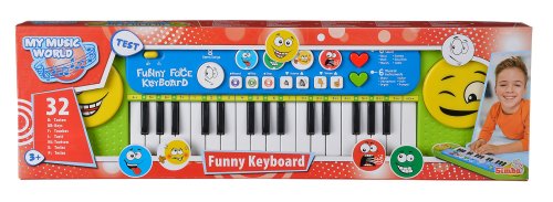 Detské, funny klávesy majú 32 kláves, 8 demo melódií, 6 rytmov a 4 smiešne zvuky. Veľkosť 51 x 14 cm.