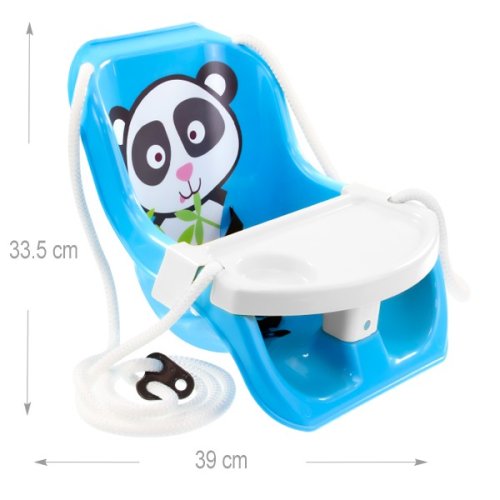 Detská závesná hojdačka s motívom pandy, ktorá je vďaka svojej konštrukcii určená pre veľmi malé deti. Laná na oboch stranách sú zakončené uchytením, na ktoré je možné hojdačku ľahko zavesiť. Hojdačka má odnímateľný stolček, ktorý zároveň slúži ako zábrana proti vypadnutiu Rozmer: 43 x 33 x 26 cm Vhodné pre deti od 1 do 3 rokov. Nosnosť 25 kg.
