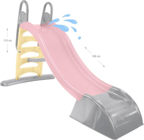 Vaša záhrada sa premení na zábavné ihrisko! Možnosť pripojenia záhradnej hadice. Sklznú plochu môžete vlhčiť pre ľahšie a zábavnejšie kĺzanie. Vhodné pre vnútorné aj vonkajšie vyžitie. Šmýkačka má na svojom povrchu UV filter, ktorý ju chráni pred slnečným žiarením a preto zostanú farby žiarivé po dlhú dobu. Vďaka pevným a stabilným schodíkom s protišmykovou úpravou je bezpečná. Okrúhle a hladké úchyty v hornej časti schodov dávajú deťom pocit bezpečia pri hraní. Dĺžka šmykľavky je 180 cm. Maximálna nosnosť 50 kg. Rozmery: 180 x 84 x 110 cm Poznámka: Dodávané v rozloženom stave. Vhodné pre deti od 2 rokov.