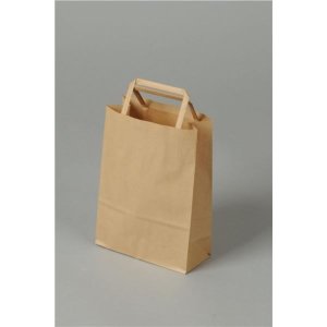 Jednofarebná hnedá papierová taška s plochými ušami z hnedého kraftového papiera, ideálne riešenie pre balenie, ktoré je praktické a zároveň šetrné k životnému prostrediu Skvelý základ pre vaše vlastné kreatívne …