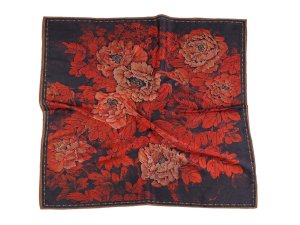 Elegantný saténový šál s kvetmi je ľahučký a mäkký, na dotyk pripomína hodváb.
