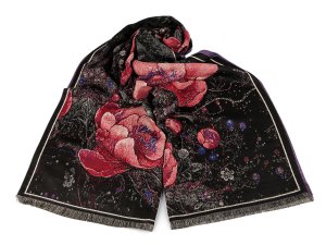 Veľká luxusná šatka typu kašmír je ozdobená kvetinovým motívom.