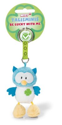 Veselá modrá sovička s krúžkom ako kľúčenka.