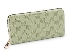 Dámska peňaženka s povrchovou kockovanou štruktúrou je elegantným a štýlovým doplnkom, ktorý upúta pozornosť.