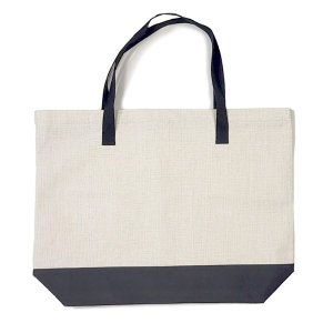 Nákupná taška s čiernymi ušami a dnom s uzáverom na zips Vhodná pre sublimačnú potlač Materiál: 100% polyester, ľanový vzhľad Ucha tašky čierna, dĺžka 23 cm Rozmer 39 x 52,5 cm Farba svetlo béžová