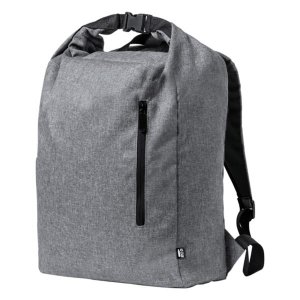 Vodotesný, rolovací batoh z RPET s bočným vreckom, predným vreckom na zips, polstrovaným chrbtom a ramennými popruhmi S výrazným štítkom RPET Polyester 300D RPET Rozmer: 31,5 x 39 x 14,5 cm