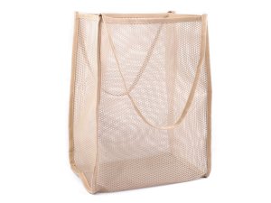 Veľká sieťovaná taška je ľahká a priestranná, s rozšíreným dnom.