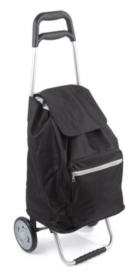 Nákupný vozík na kolieskach s pevným chrbtom.