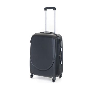 Cestovný škrupinový kufor na kolieskach ABS16 veľkosti M v čiernej farbe, je vyrobený z kvalitného plastu ABS, ktorý je odolný proti nárazu.