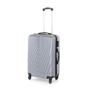 Cestovný škrupinový kufor na kolieskach ABS07 veľkosti M v šedej farbe, je vyrobený z kvalitného plastu ABS, ktorý je odolný proti nárazu.