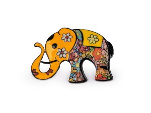 Brošňa slona s farebným smaltom je doplnkom, ktorý okamžite upúta pozornosť.