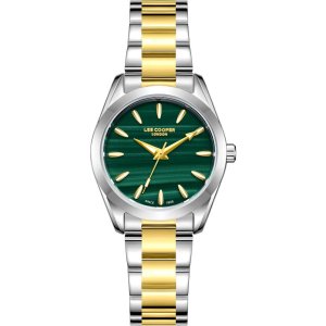 Dámske náramkové hodinky Napájanie z batérie Priemer puzdra 32,0 mm Puzdro v tvare kruhu Kovové puzdro Strieborná farba puzdra Kovový ťah Strieborná/zlatá farba ťahu Ručičkový ciferník Zelená farba ciferníka …