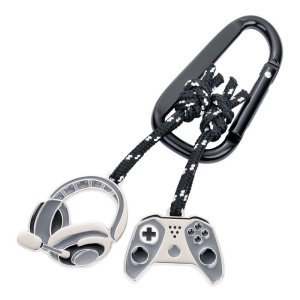 Kľúčenka s karabínou a 2 príveskami na dekoratívnom horolezeckom lane v čierno - striebornom prevedení.