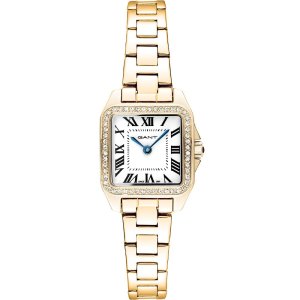 Dámske náramkové hodinky Napájanie z batérie Priemer puzdra 28,0 mm Puzdro v tvare štvorca Oceľové puzdro Zlatavá farba puzdra Oceľový ťah Zlatavá farba ťahu Ručičkový ciferník Strieborná farba ciferníka …