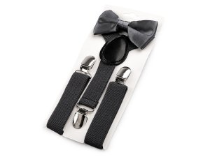Detský set sa skladá z jednofarebných trakov a motýlika.