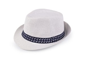 Letný detský klobúk zdobí stuha s potlačou kotvičiek.