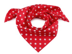 Bavlnenú šatku s drobnými bodkami môžete nosiť nielen okolo krku, ale aj ako pokrývku hlavy.
