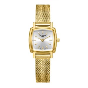 Dámske náramkové hodinky Napájanie z batérie Priemer puzdra 27,0 mm Puzdro v tvare štvorca Kovové puzdro Zlatavá farba puzdra Kovový ťah Zlatavá farba ťahu Ručičkový ciferník Strieborná farba ciferníka …