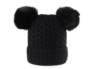 Dievčenská zimná čiapka s veľkými brmbolcami pripomína roztomilé zvieratko s uškami.