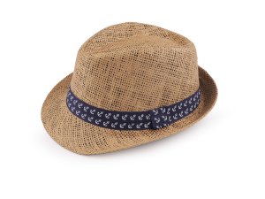 Letný detský klobúk zdobí stuha s potlačou kotvičiek.