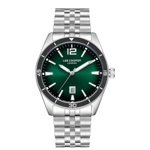 Pánske náramkové hodinky Napájanie z batérie Priemer puzdra 42,0 mm Puzdro v tvare kruhu Kovové puzdro Strieborná farba puzdra Kovový ťah Strieborná farba ťahu Ručičkový ciferník Zelená farba ciferníku …